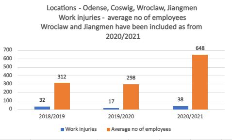 The objective for the coming financial year is to obtain certification according to ISO 45001 in the production sites in Odense and Coswig. The project will start with a review of all working operations and flows, and where relevant to adapt them according to ISO 45001. The production sites in Poland and China have been certified in this connection.