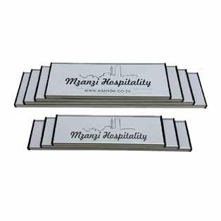 Manufactured in aluminium, brass, stainless steel, acrylic, wood, Dibond (non-changeable), and plastic (changeable) to suit various branding needs.