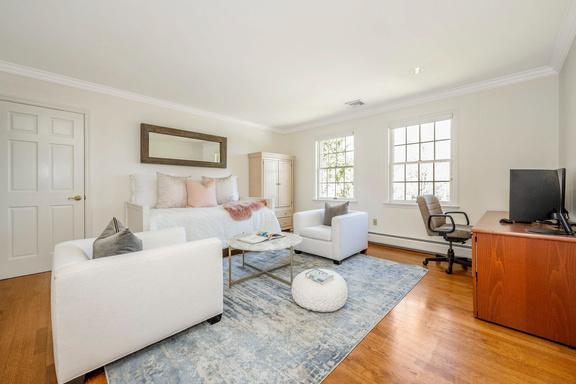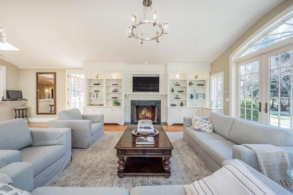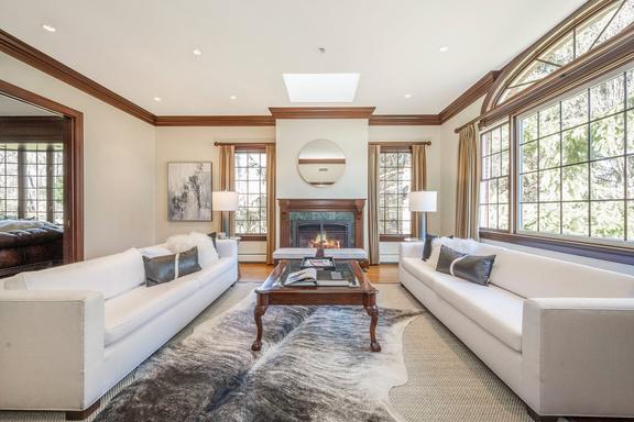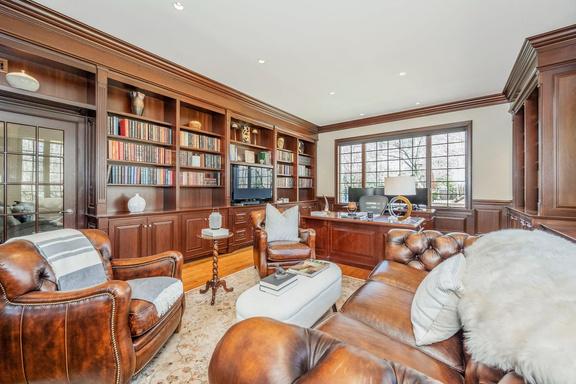 The home’s classical forecourt and impressive entry provide a fitting prelude to the many delights waiting within Inside you’ll find fully renovated interiors awash in elegance, warmth, and natural light. Highlights include a gracious living room with a fireplace, a formal dining room, and a comfortable family room with a fireplace and wet bar. You’ll enjoy cooking and relaxing with family and friends in the fabulous eat-in kitchen, which opens to the Great Room anchored by a dramatic fireplace. A study and 5 sunlit bedrooms are also offered, including a main-level guest room and a serene primary suite. Designed for fun, a lower level hosts a lounge/media room, playroom, exercise room, and full bath.