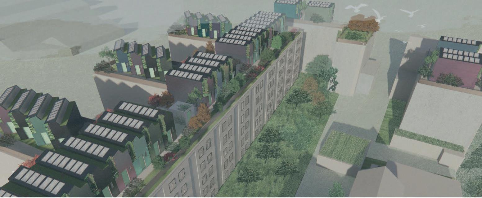 This project reimagines a former gasworks in Cardiff as a high-density, sustainable community centred on circular economy principles. The master plan incorporates family housing, open green spaces, cultural hubs, and improved transport links. A focus on flexibility led to the design of a disassemblable market hall, maximising material recovery. The proposal emphasises regeneration, ecological balance, and adaptive reuse to foster a resilient urban environment.