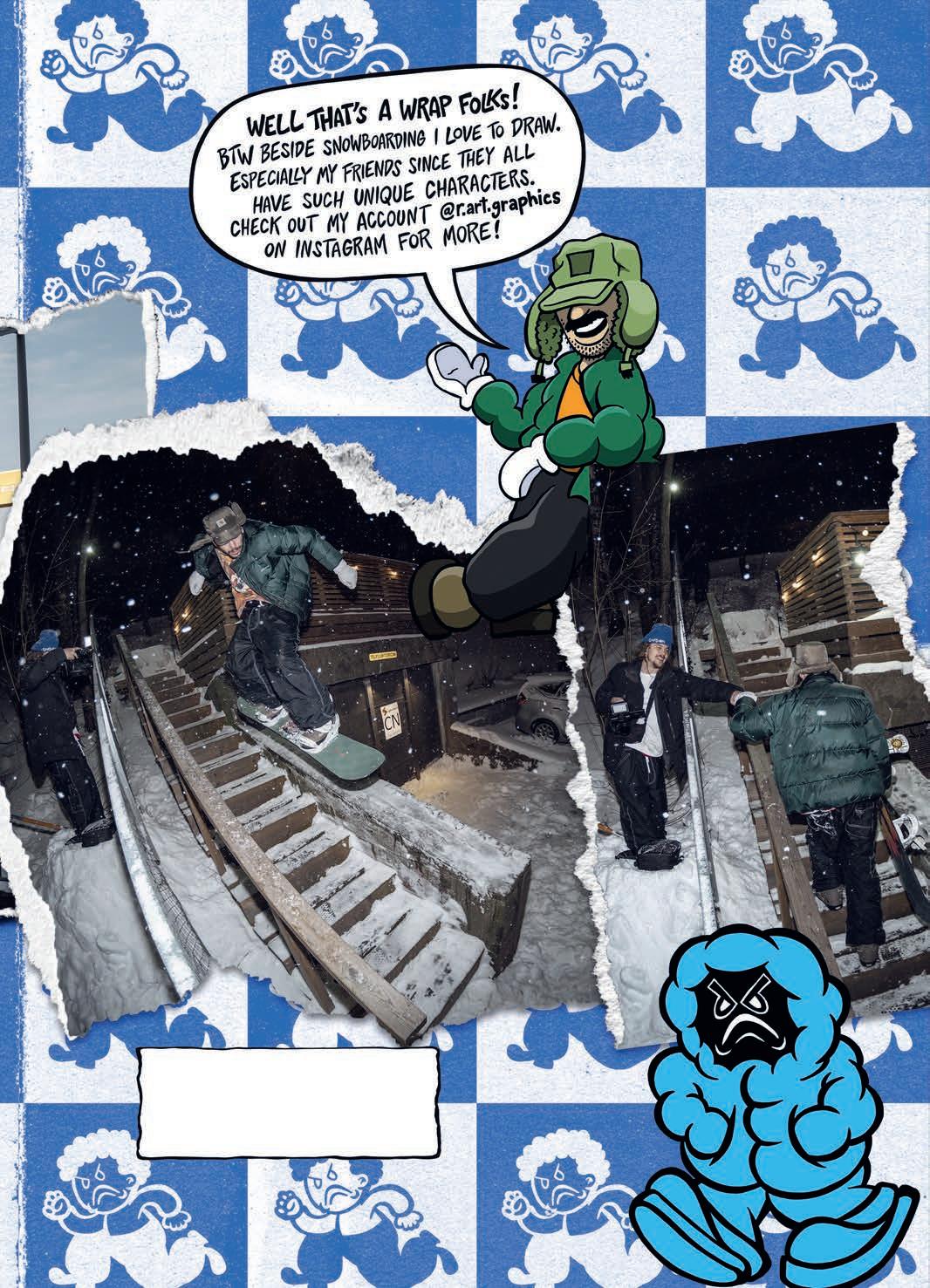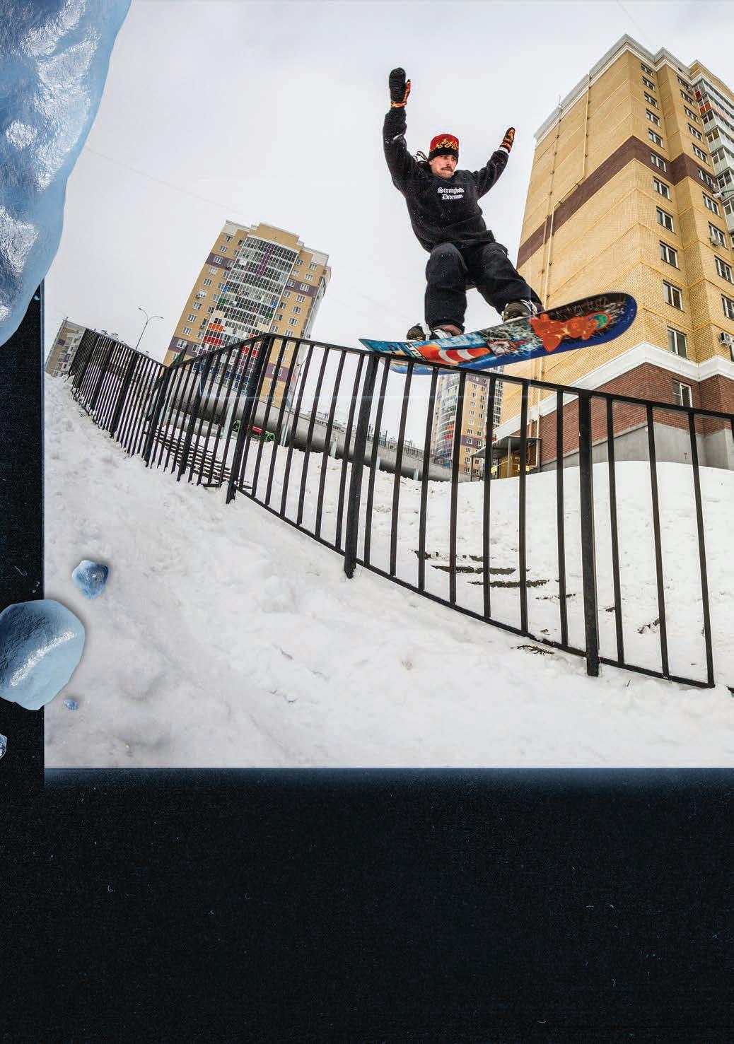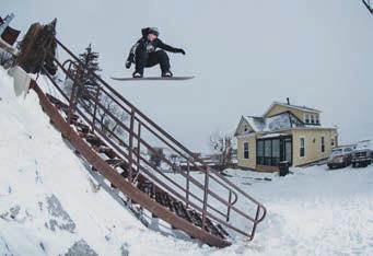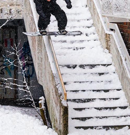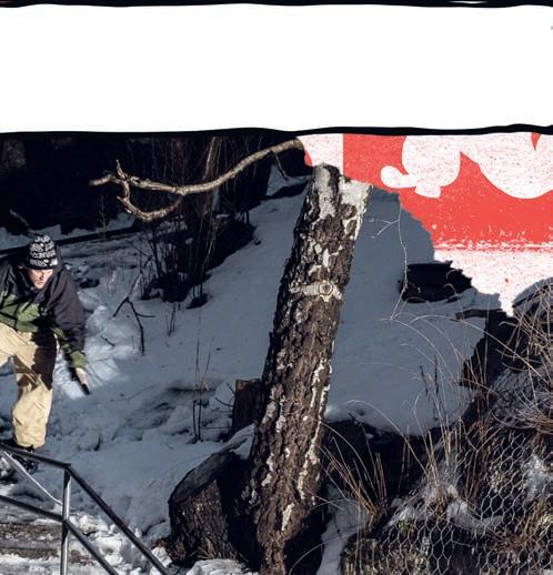 Yeah, that’s a big part of it. I mean, that’s the kind of thing we pride ourselves on as being really reminiscent of those old snowboard videos like “Chulksmack” and “ShakeDown” and all this stu . Just chasing that run-through-a-wall energy.
