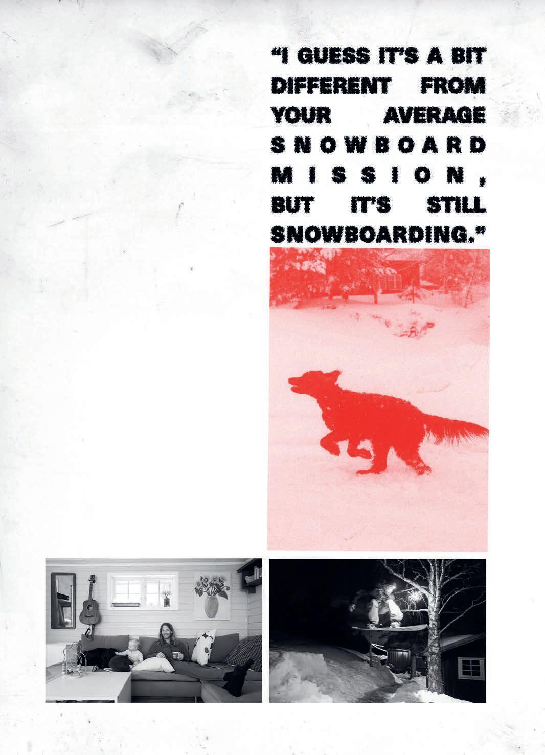 I guess I’ve viewed the magazines as one part mark on the snowboard world and one part dick on a pedestrian crossing. Something that recorded our achievements and said ‘we were here’ while also acknowledging that the fact we’re here at all is fairly absurd. Whatever they’ve been, I hope you saw some inspiring stu , read some interesting things, and, most of all, I hope you had a laugh or two along the way.