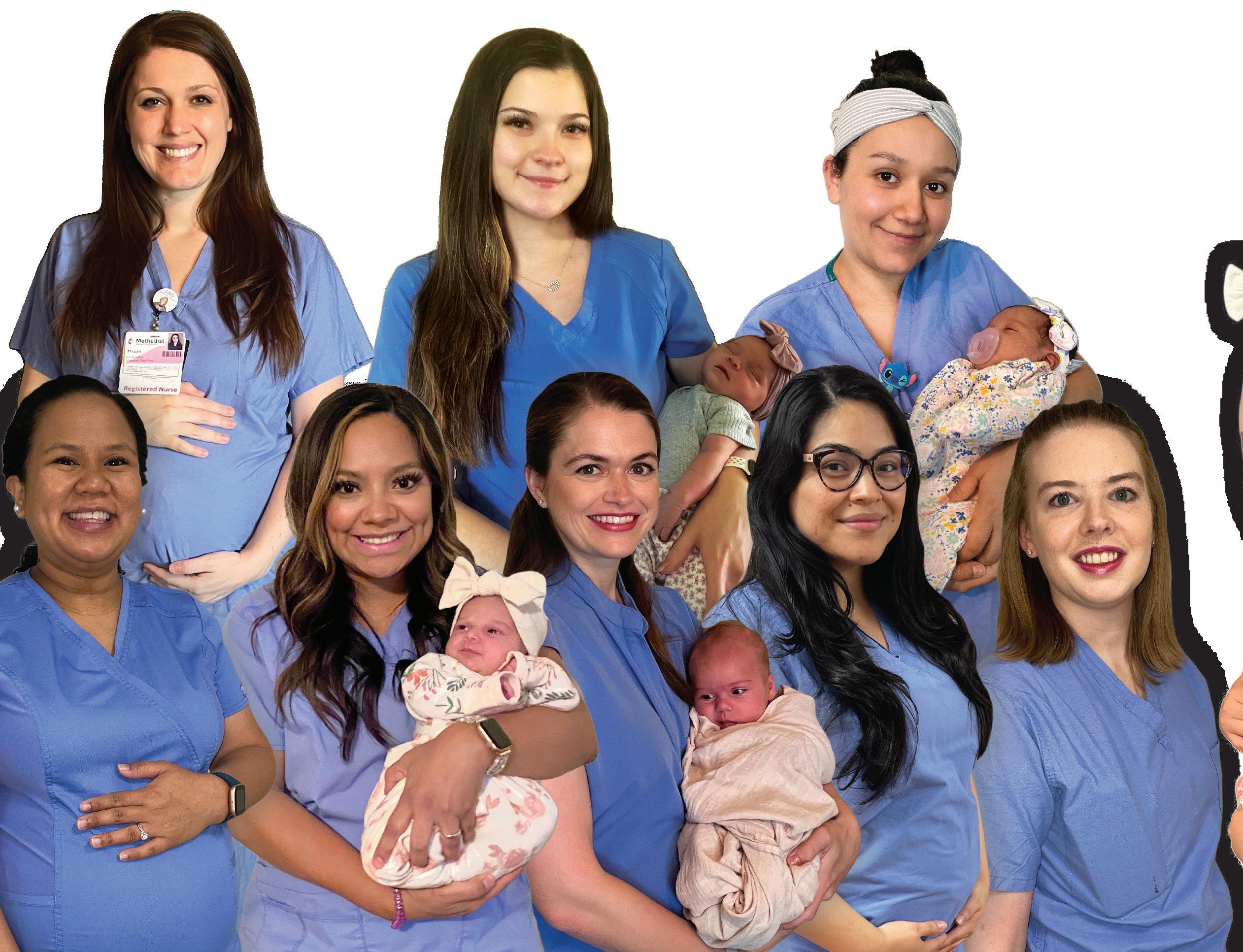 Pregnant bellies and newborn cries are everyday sights and sounds on the Labor and Delivery Unit at Methodist Hospital. But things have grown interesting over the last few months, considering 17 nurses on the unit are pregnant alongside the patients they care for and the patients have taken notice.
