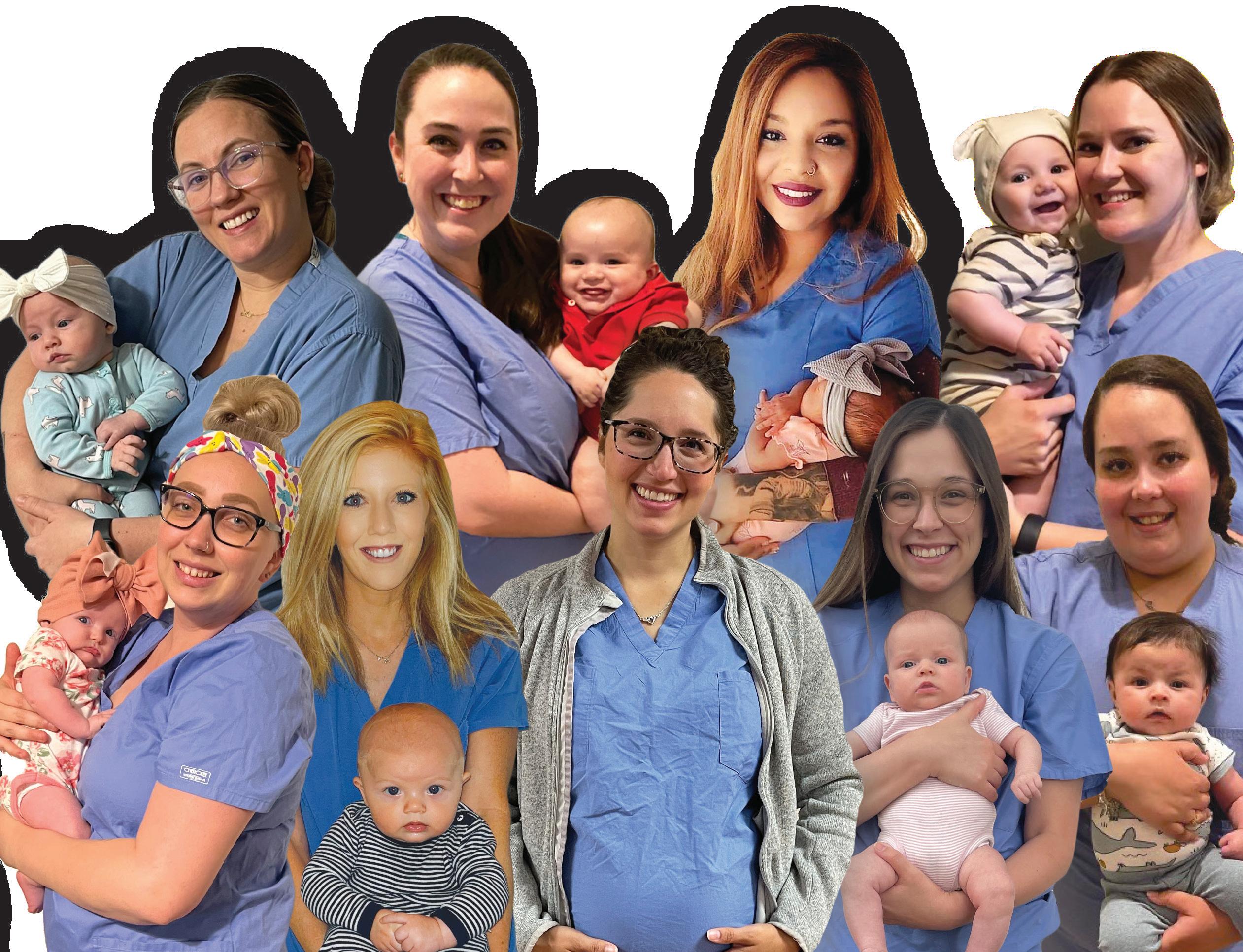 The due dates for the nurses span from December 2021 to July. Break room baby showers and chatter about baby names and the best newborn products have