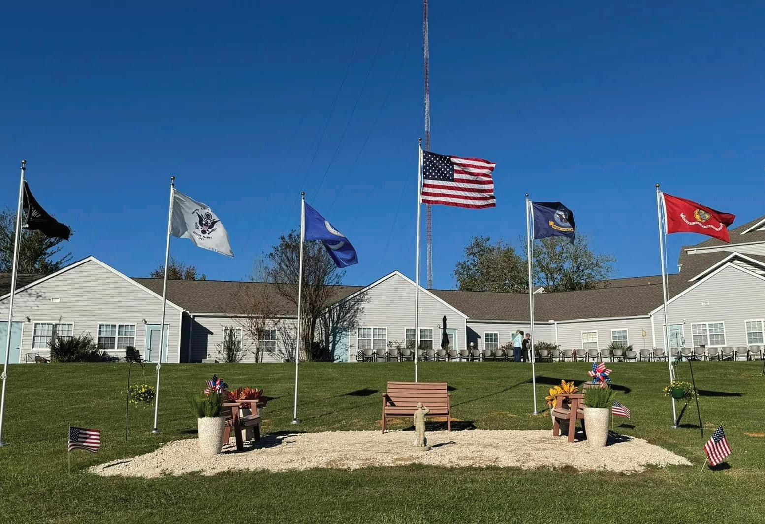 In November of 2024, Riggs Manor hosted a Veterans Day car show to raise the money to make the military flag display a reality. Now when you pull up to the community, the flags are there to greet you, as well as the prayer garden underneath it.