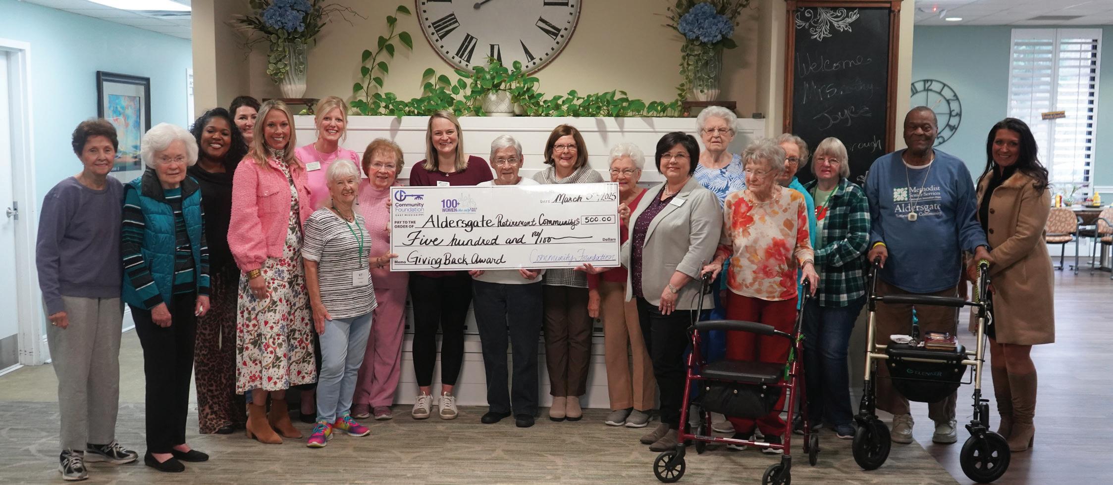 Aldersgte Retirement Community was awarded a $500 grant from the 100+ Women Who Care. The 100+ Women Who Care is a non-profit organization run by women, operating under the Community Foundation of East Mississippi. Their mission is to use the power of collective giving to make a difference in East Mississippi communities.
