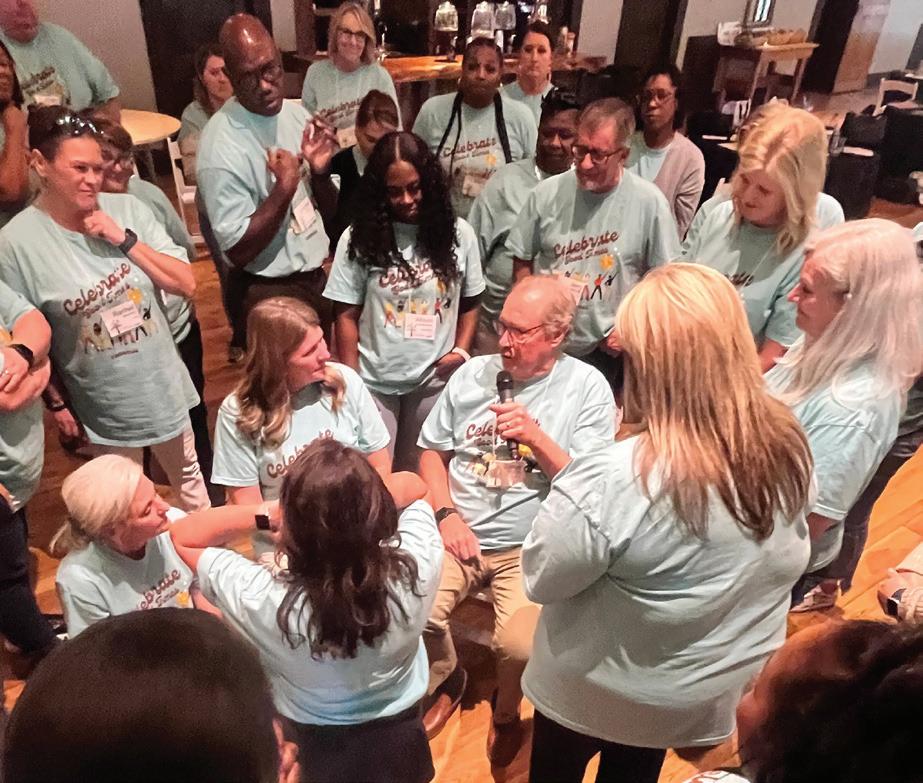 Celebration of Leadership Fellows praying over Steve McAlilly and Christie Vance in preparation of their Leadership transitions.