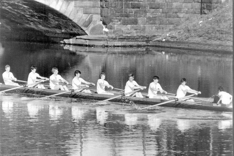 This photo is from 1955. It was the first time a Methody crew rowed at Henley in the Princess Elizabeth Cup.
