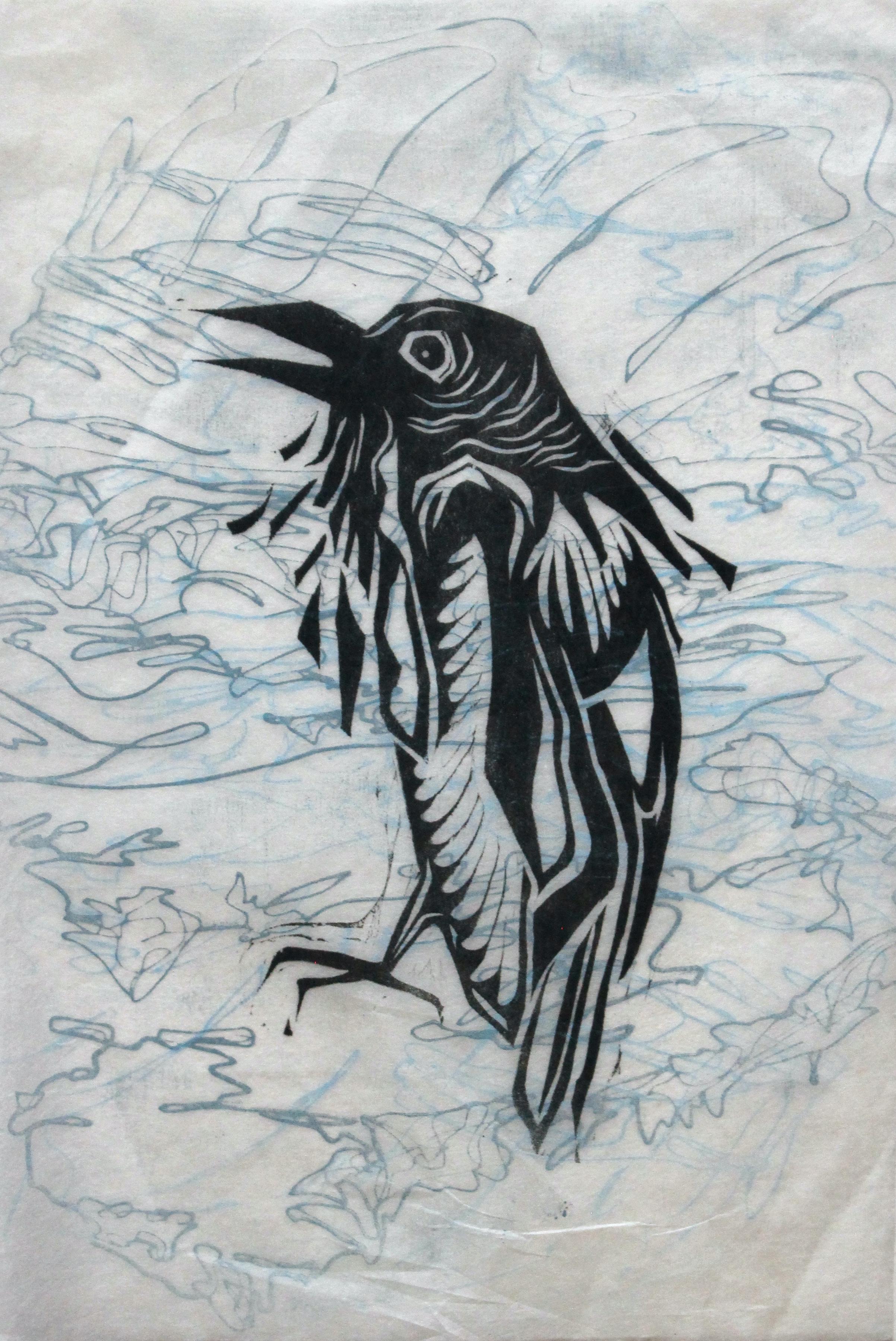 Laura’s relationship with making began in childhood solitude and connection to the more-thanhuman world. “My first print is on the wall—it’s a cardinal I did when I was 10,” they tell me, gesturing toward the framed piece. “I went to the library and got a bird book. I loved Cardinals. Nature was my lifeline as a kid, and I spent a lot of time in the woods by myself. So even then, I picked something dear to me,” a theme that has informed their creative process and teaching since.