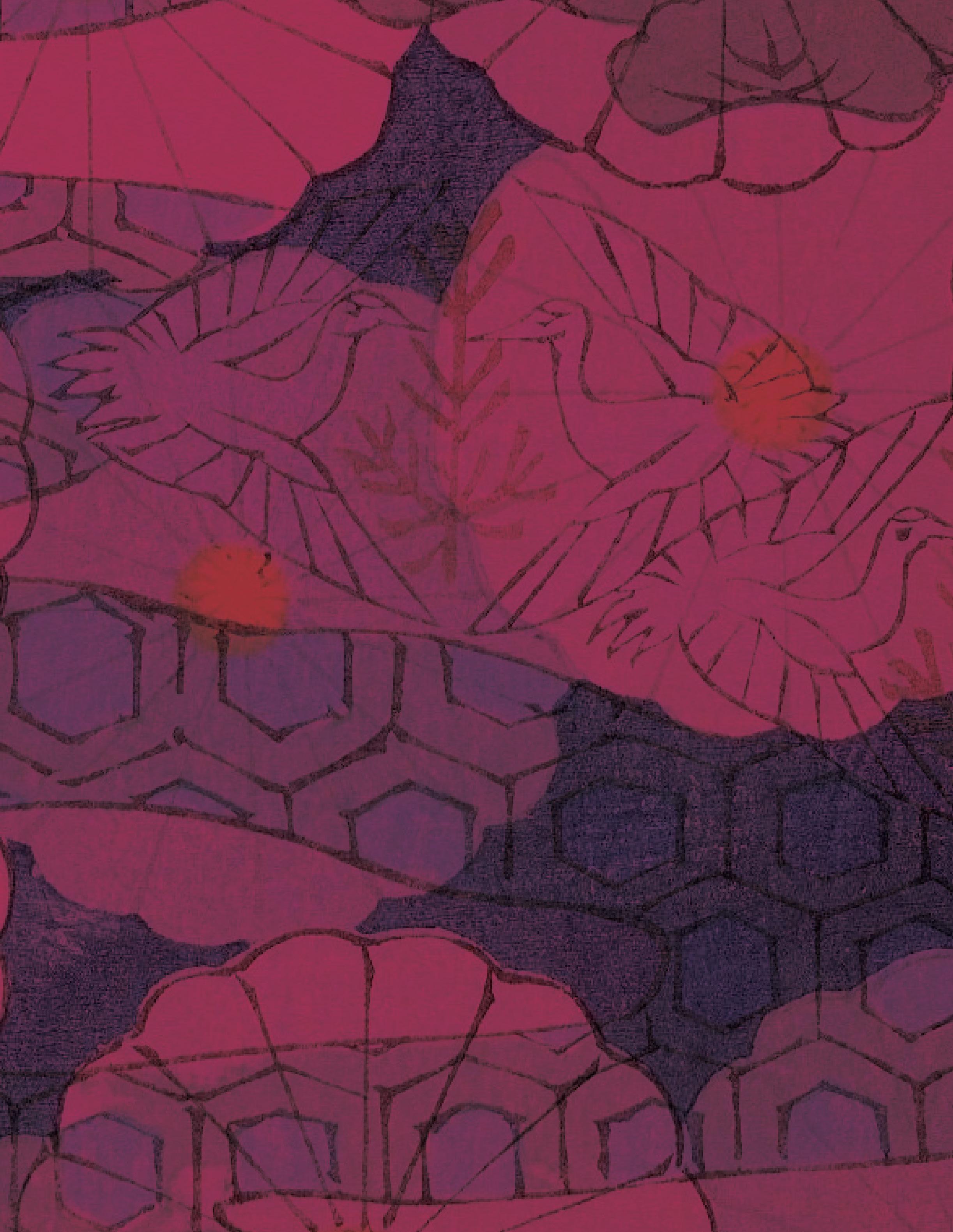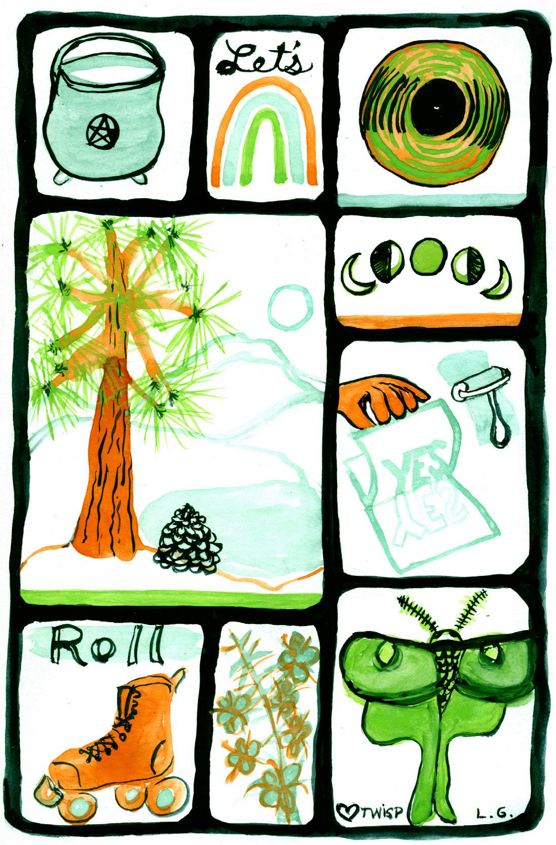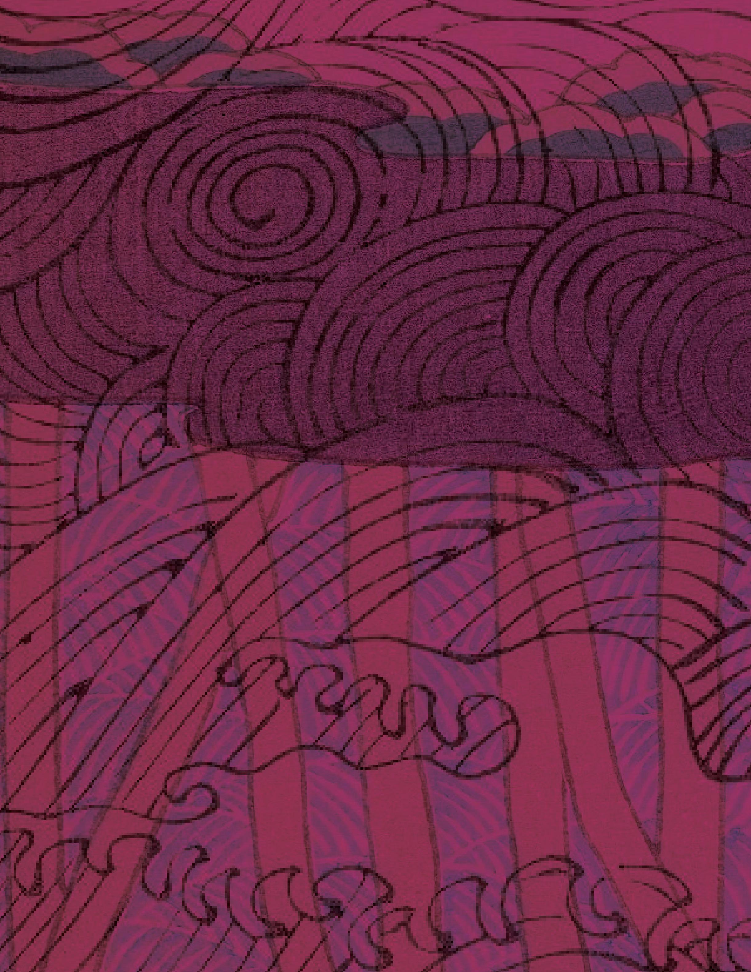 C: Often during the drawn-out carving of a piece, questions or ideas sprout from and shape the work. I like to share those or wrap them into an artist statement that can provide a little more for someone who is grasped by the visual of a piece. Particularly my collages contain a lot of abstracted textures that are actually specific characters in the story, like topography, plants or rock formations. Naming them helps me trace my influences back to the ground!