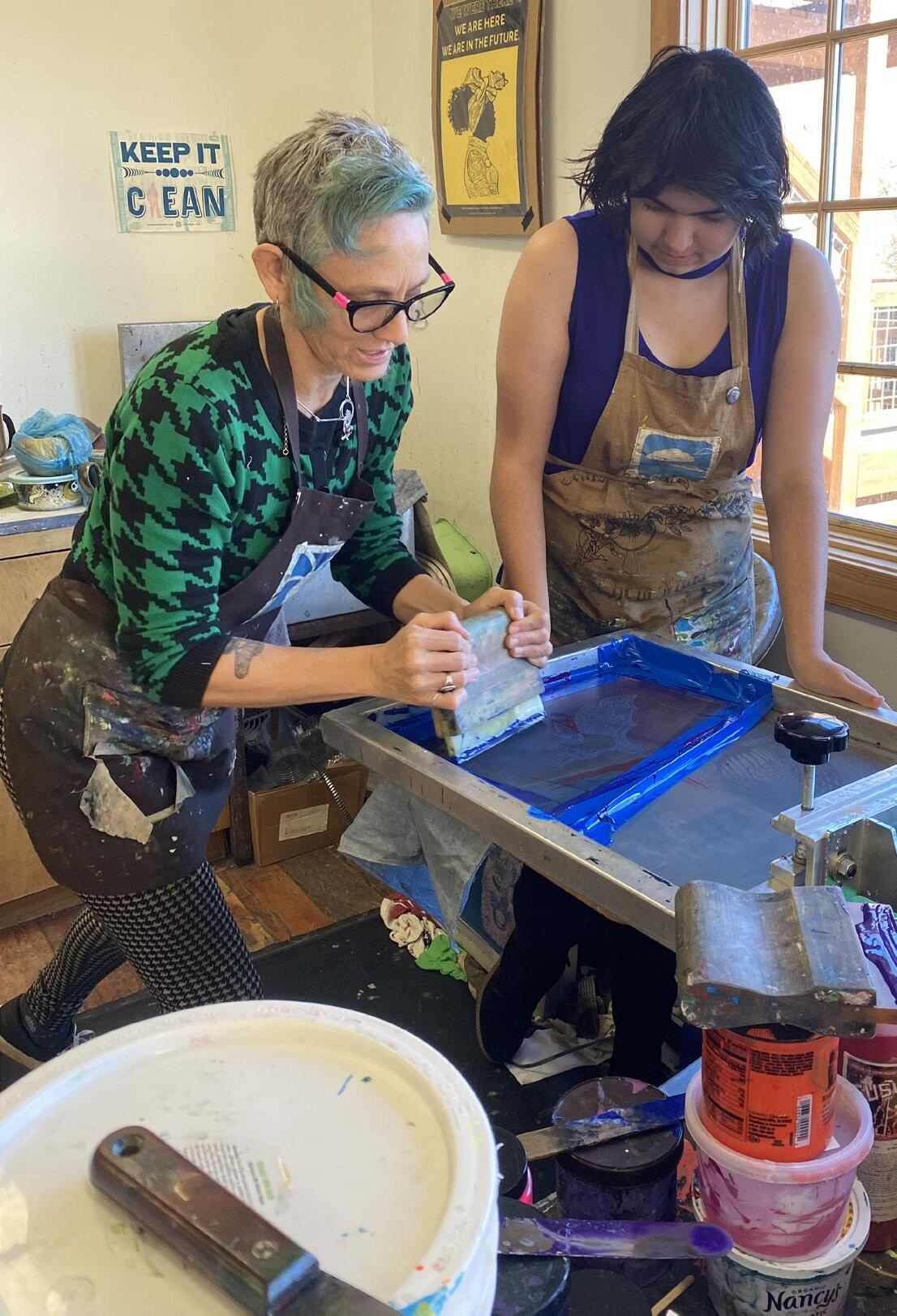 “I feel the responsibility to keep this space alive. This space holds a cultural piece that is essential,” Laura reflects. Laura now works in collaboration with Methow Pride to offer community -run programming for queer people and allies. Collaborations with OkFyre, the ILC, MVSD, Methow Arts, Confluence Art in Twisp and Western Washington University Pathways have Laura doing what they love most, “coaching people through learning to create in their own way and really learning skilled processes.” Recent com-