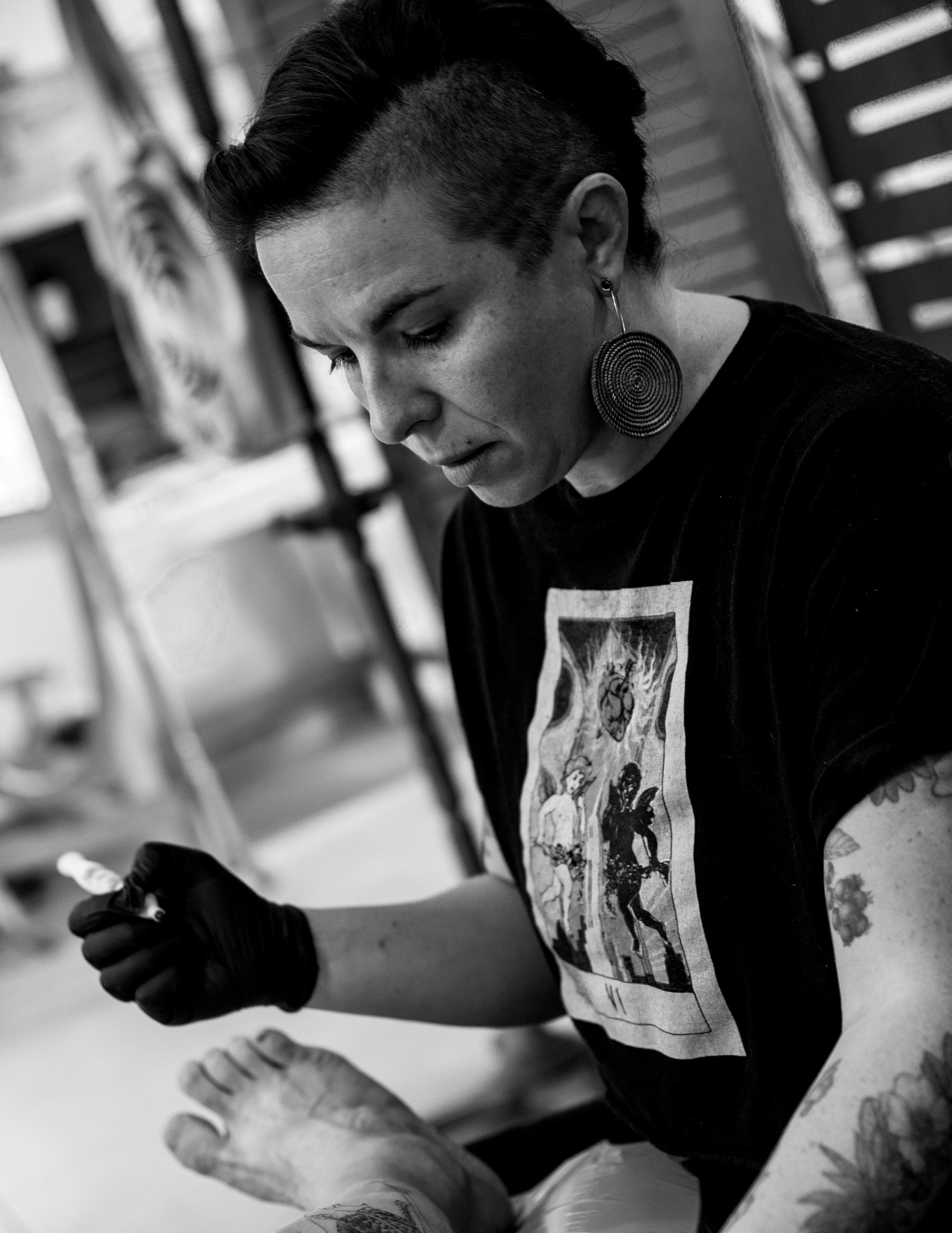 Founded by Caitlin Cordell, the studio specializes in fine line, black and gray illustrative tattoos inspired by nature. With a background in social work, Caitlin takes a trauma-informed approach, using tattooing as a tool for healing and personal expression.