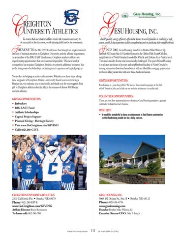 CREIGHTON UNIVERSITY ATHLETICS 2500 California Plz. • Omaha, NE 68178 Phone (402) 280-GIVE www.GoCreighton.com/GIVING