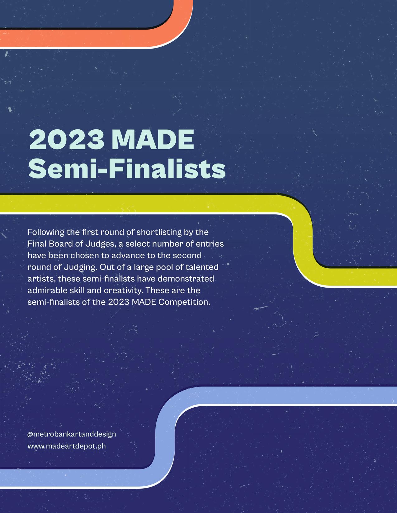 To ensure the integrity and fairness of our search, MADE follows a thorough vetting process implemented at varying stages in the competition. Your engagement is important to the process. To the members of the community who would like to give their feedback on the artworks, please fill out Public Viewing Survey Form accessible at: bit.ly/MADEfinalistsfeedback23. In the form, kindly write your comments, suggestions for investigation, and links for reference.
