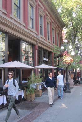 the mother tongues in 30 per cent of Vancouver homes, makes Chinese the largest “minority” ethnic group. There are lots of interesting markets with many varieties of fresh and dried seafood and mushrooms. You’ll also find inexpensive houseware and traditional Chinese medicine. During the summer, on weekend evenings, Keefer and Pender Streets become a busy openair night market. If you have time for a leisurely meal, try dim sum at one of the many small restaurants. It is an inexpensive, multi-course culinary adventure. Besides the businesses on Pender Street, try East Georgia for some interesting newcomers and oldsters.