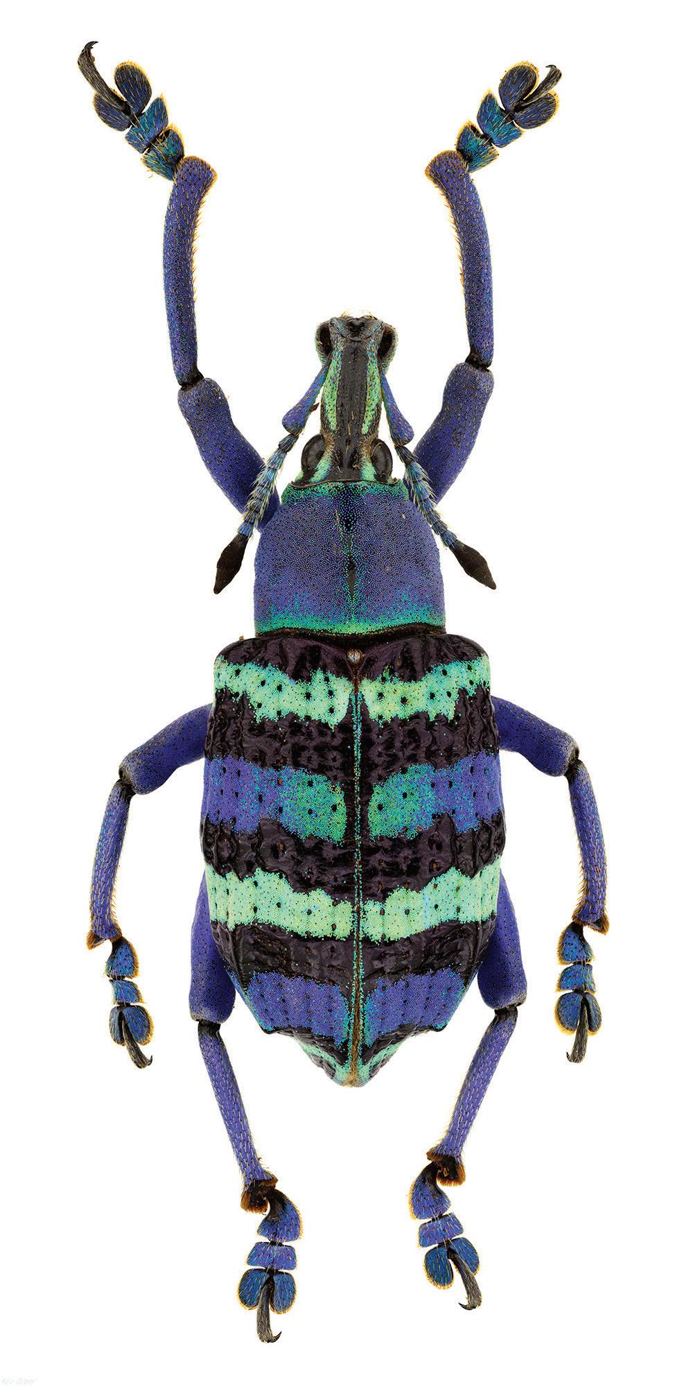 • Bob Sober, Weevil (Eupholus magnificus) Yapen Island, Indonesia, 2013; digital image printed on aluminum, 80 x 20 inches; Courtesy of art’s IMPORTANT, LLC.