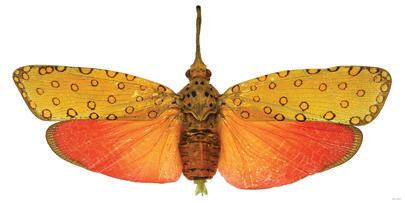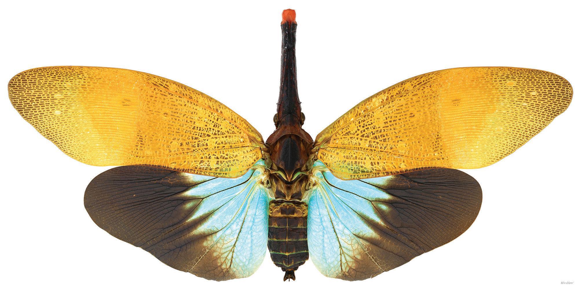 • Bob Sober, Lanternfly (Genus species unidentified) Thailand, 2015; digital image printed on aluminum, 30 x 60 inches; Courtesy of art’s IMPORTANT, LLC.