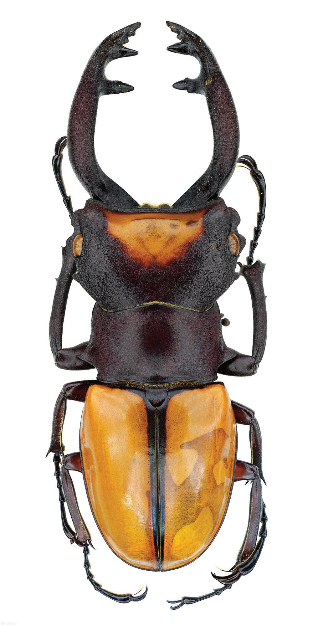 • Bob Sober, Stag Beetle (Odontolabis lacordairei) Sumatra, 2013; digital image printed on aluminum, 80 x 20 inches; Courtesy of art’s IMPORTANT, LLC.