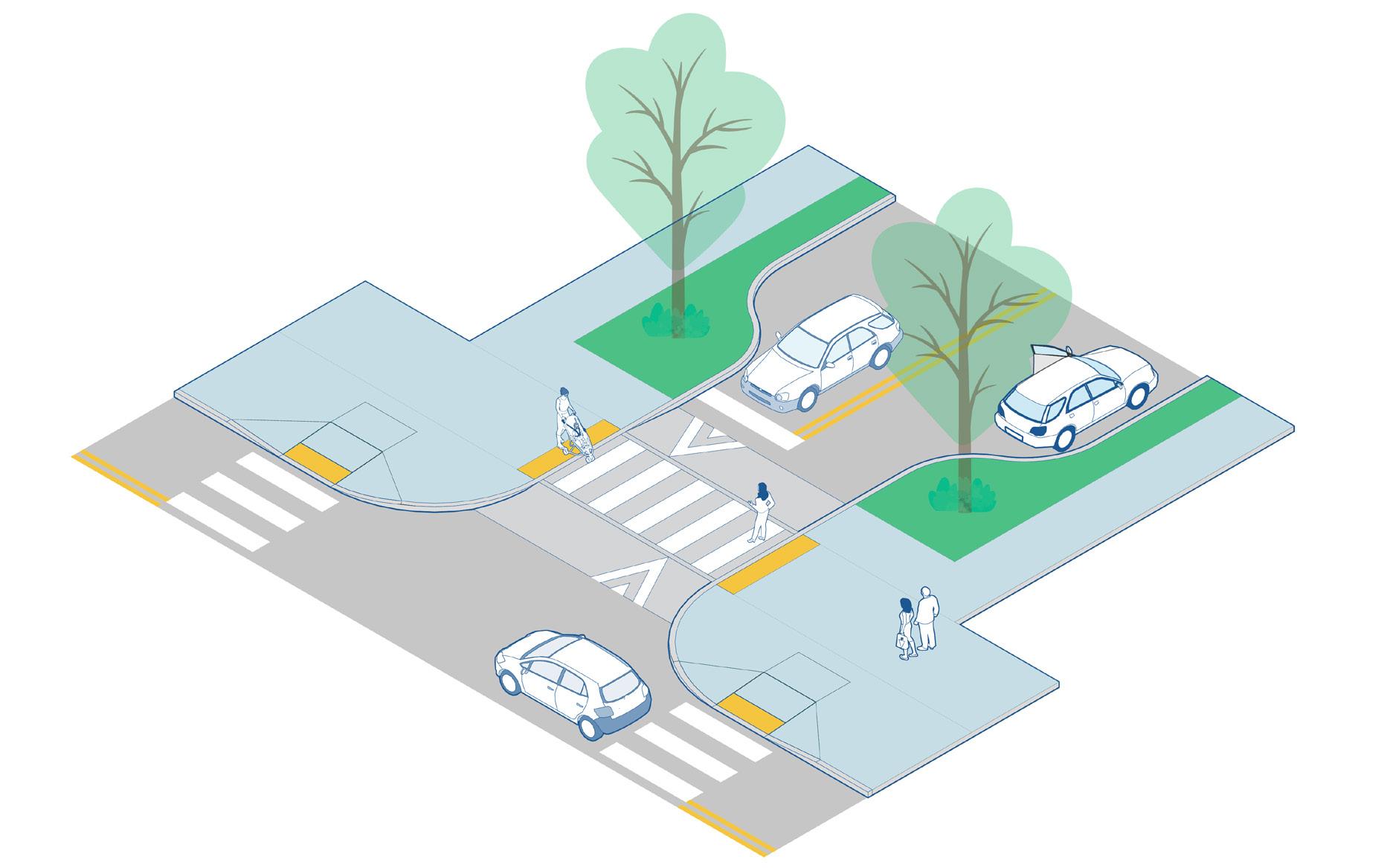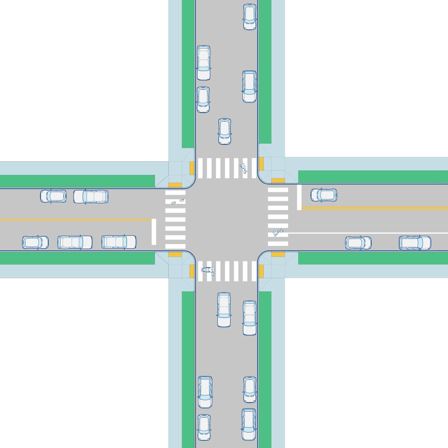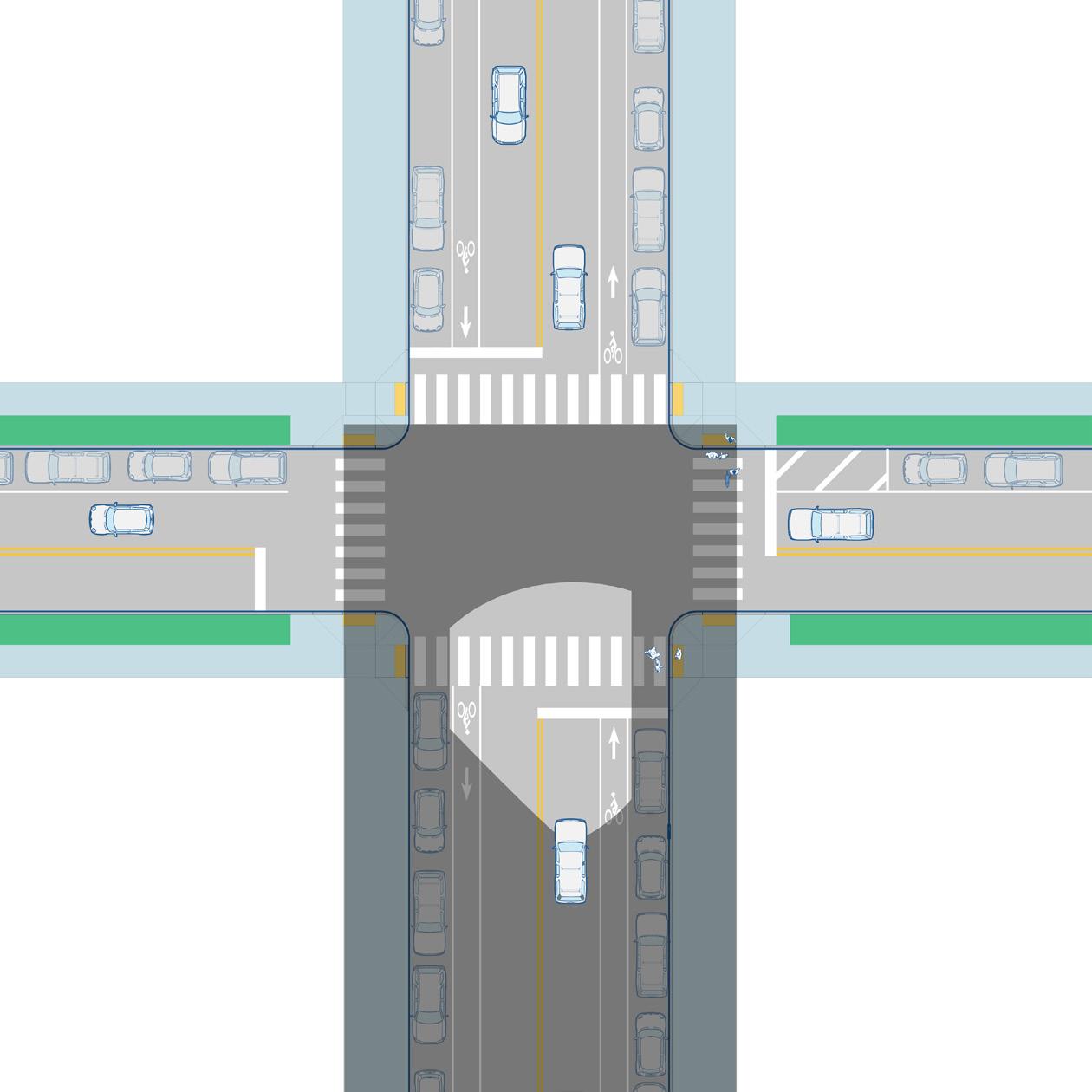 » If on-street parking is provided, install daylighting at intersection approaches to improve visibility at the intersection.