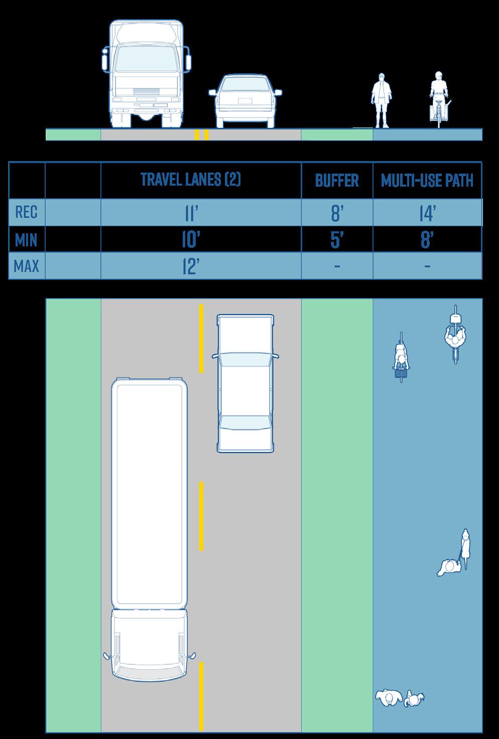 » Urban Trail: An off-street travelway designated for people walking, bicycling, running, using other micromobility options, pushing a stroller, or using a wheelchair.