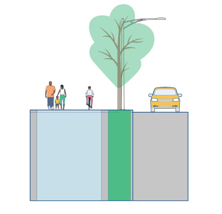 » Use curbs to delineate protected queuing are for people using bike lanes or Urban Trail.