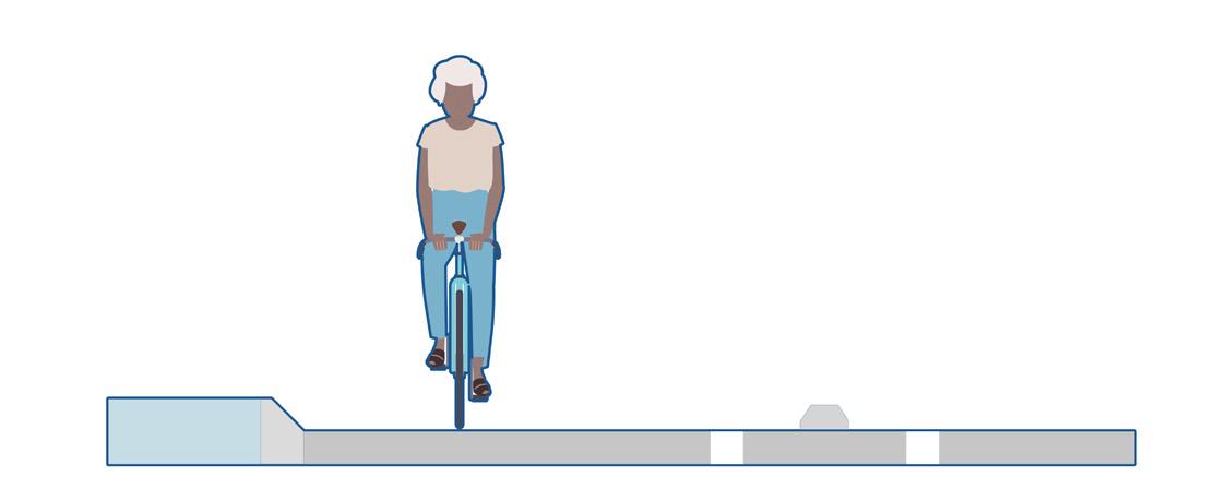 » Expand queuing areas to 10’ deep to accommodate people riding cargo bicycles or bicycles towing trailers.