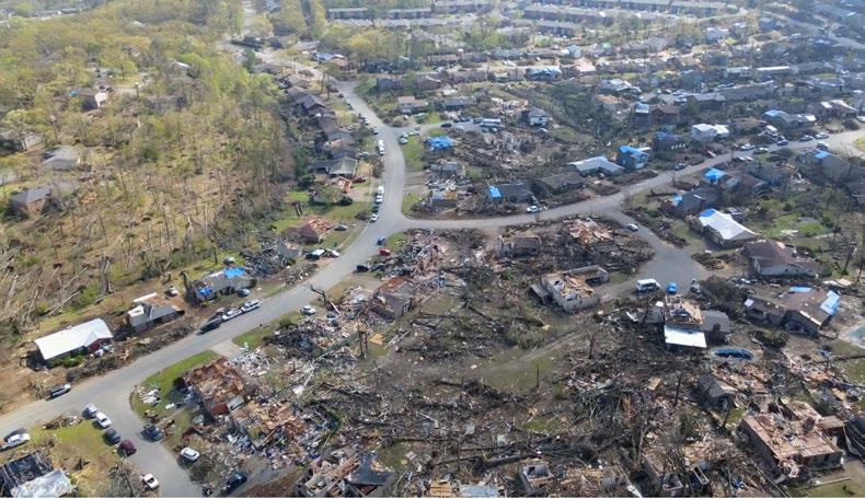 This drone image captures some of the tornado’s worst damage in LIttle Rock’s Walnut Valley area along Shackleford Road. Photo credit: David Lewis