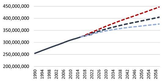 Source: U.S. Bureau of the Census. High, middle and low migration forecast scenarios developed by Census Bureau in 2017.