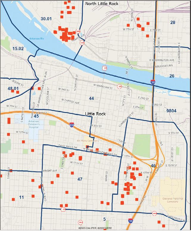 The map above depicts the “infill tracts” defined in the statistical supplement on page 14, in Conway, central Little Rock/North Little Rock, and downtown Benton.