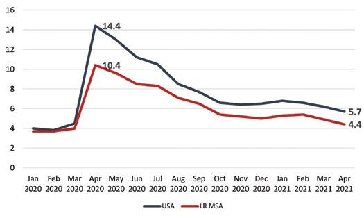 Little Rock MSA Labor Force Trend January 2020–April 2021