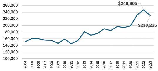 The average stated value for new homes declined in 2023, after several consecutive years of rising. The 2023 value of about