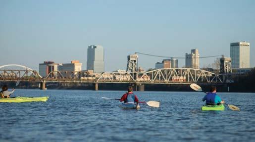 A few years ago, Sam Ellis used his life savings to buy three kayaks and start a rental business. The gamble paid off and today Sam runs a successful small business—Rock Town River Outfitters—with three locations renting an assortment of kayaks, bikes and mountain bikes. Many of his customers come from out of town, including business visitors with one free day after a conference or training session to “do Little Rock.” His business has served visitors from most of the fifty states and plenty from abroad. A biking visitor can pedal the Arkansas River Trail to view an active downtown scene and a variety of scenic parks. A kayak can paddle from the Rock City Yacht Club to downtown in five minutes, faster than you can drive it.