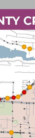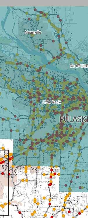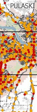 shows high injury intersections within Pulaski County. Pulaski County contains 112 intersections that make up approximately 71 percent of the Regional High Injury Intersections.