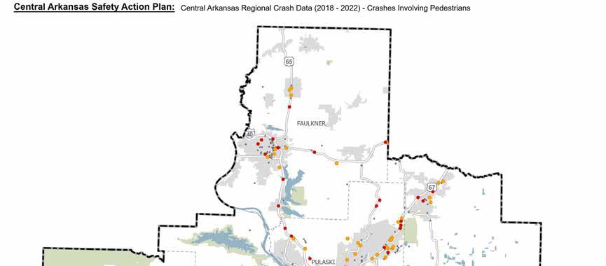 The purpose of the Pulaski County Supplemental County Level Plan is to address the specific safety needs and projects identified by local stakeholders within Pulaski County. The Supplemental County Level Plan expands on the Central Arkansas Safety Action Plan by focusing on additional segments and intersections located within Pulaski County’s High Injury Network (HIN) and High Injury Intersections that were not already addressed in Central Arkansas Safety Action Plan. Unlike the Central Arkansas Safety Action Plan, which considers the entire Central Arkansas Region as a whole and consists of Faulkner, Lonoke, Pulaski, and Saline Counties, this Supplemental County Level Plan focuses exclusively on Pulaski County (“the County”). Its main objectives are to identify projects and implement strategies that can help Pulaski County reduce fatal and serious injury crashes on its roadways, with the ultimate goal of eliminating these crashes all together. This is a crucial step towards achieving the same goal of eliminating fatal and serious injury crashes for the entire Central Arkansas Region. The Central Arkansas Safety Action Plan used a primarily data driven approach to develop regional projects. The Supplemental County Level Plan is also primarily data driven, but relies on input from local agencies to select segments and intersections as a key selection criteria in developing regional projects.