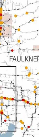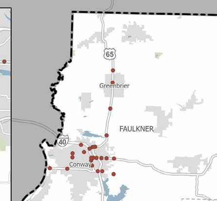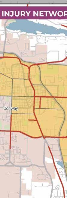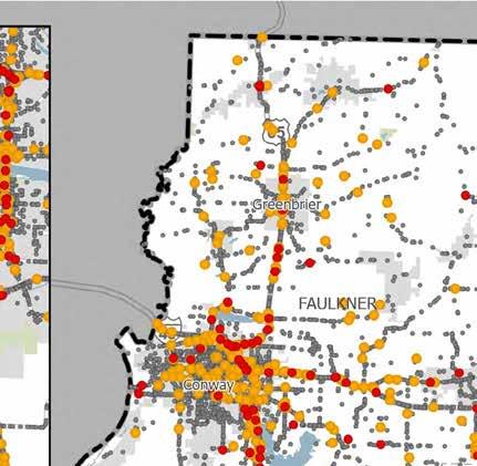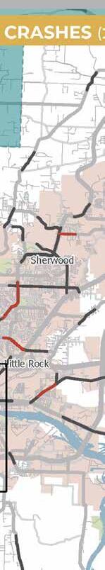 crashes, it was found that intersectionrelated, distracted driving, and non-motorist crashes were the top three SHSP focus areas. These SHSP focus areas align with the top three areas of concern for the Central Arkansas Region. This correlation is likely due to the fact that Pulaski County contains over half of the population in the Central Arkansas Region and 40 percent of the total lane miles within Central Arkansas.