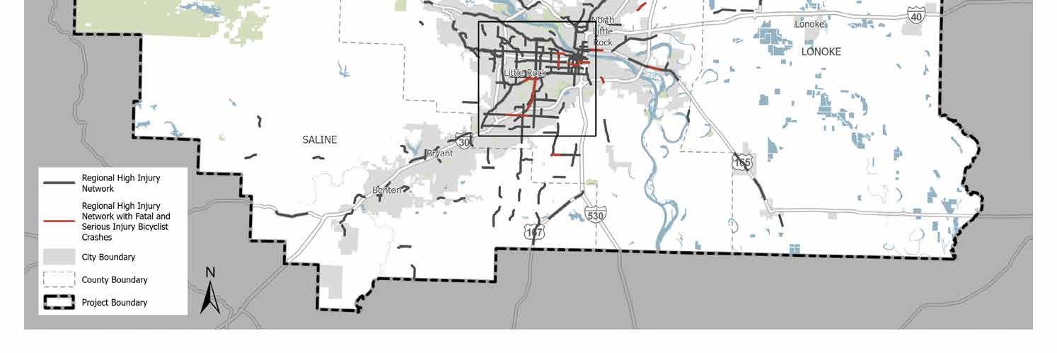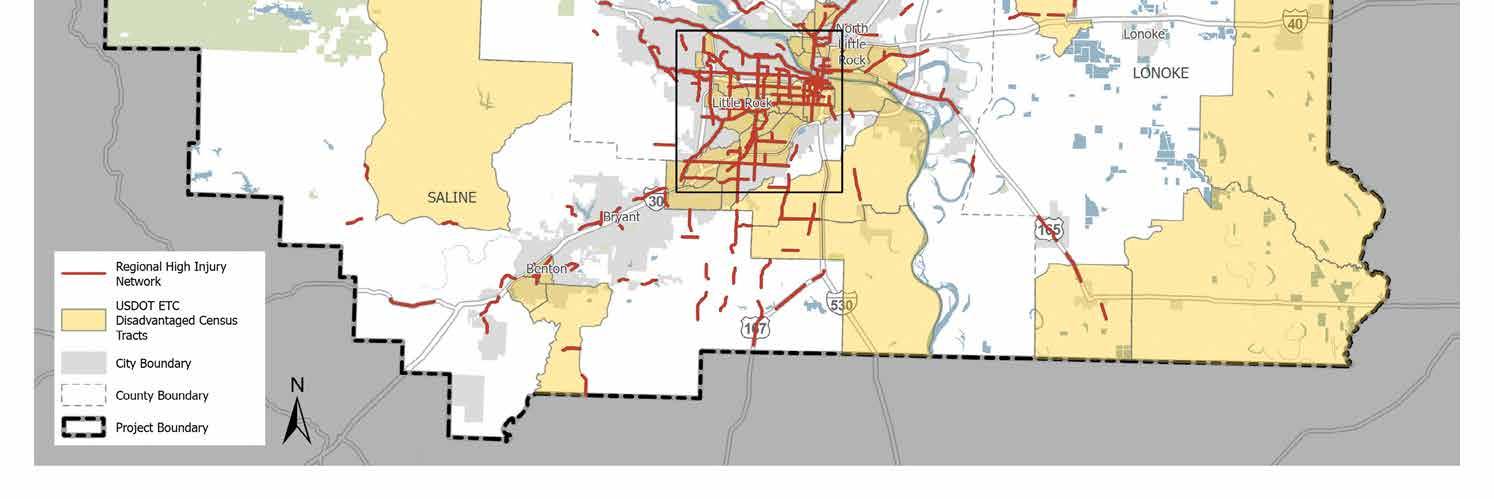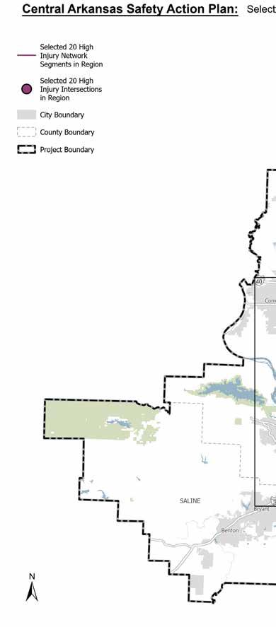 A Regional High Injury Intersection set was also established as part of the Central Arkansas Safety Action Plan, Figure 4