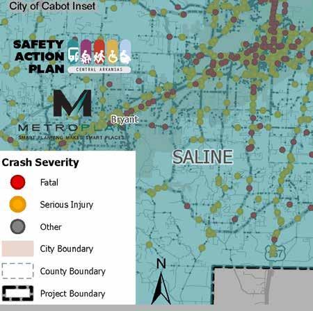 From 2018 to 2022, there were over 14,000 reported crashes within Saline County, representing nearly 12 percent of all crashes in the Central Arkansas Region.