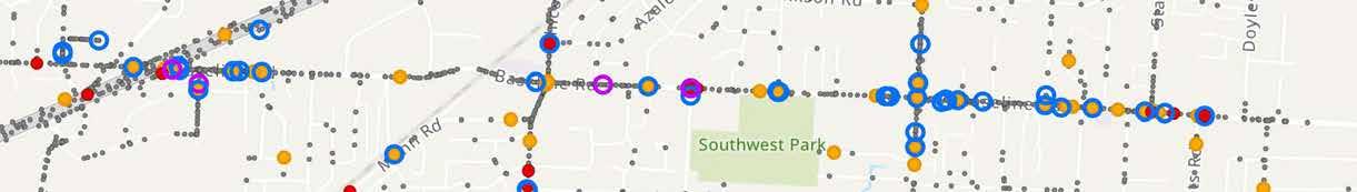 Table 2 includes the top HIN segment in each city within Pulaski County that had a segment on the HIN. Table 3 includes the top High Injury Intersection in each city within Pulaski County that had an intersection considered to be a High Injury Intersection The top segment or intersection in unincorporated Pulaski County is also included in the tables. Segments or intersections that were included in the Central Arkansas Safety Action Plan are identified in the “Top 20 Regional Plan” column Additional information on these segments and intersections can be found in that plan