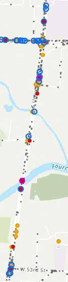 The USDOT Equitable Transportation Communities (ETC) national census tract data helps identify historical underinvestment in disadvantaged communities. This information shows the cumulative burden these communities experience in various areas. The ETC Explorer uses 2020 census tracts and data to analyze five components, each of which have numerous factors that make up their score: Transportation Insecurity, Climate and Disaster Risk Burden, Health Vulnerability, and Social Vulnerability. The overlay of disadvantaged census tracts, shown in Figure 3 and Figure 4, revealed that almost 55 percent of HIN segments and almost 62 percent of HII within Pulaski County fall within a disadvantaged community. Equity is an important component in funding for projects through the USDOT SS4A Implementation Grant Program. Location of a segment or intersection within a disadvantaged census tract is used in this study as part of the scoring to rank segments and intersections when prioritizing projects.