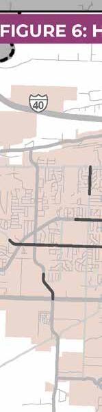The USDOT Equitable Transportation Communities (ETC) national census tract data helps identify historical underinvestment in disadvantaged communities. This information shows the cumulative burden these communities experience in various areas. The ETC Explorer uses 2020 census tracts and data to analyze five components, each of which have numerous factors that make up their score: Transportation Insecurity, Climate and Disaster Risk Burden, Health Vulnerability, and Social Vulnerability. The overlay of disadvantaged census tracts, shown in Figure 3 and Figure 4, revealed that almost 20 percent of HIN segments and almost 50 percent of HII within Saline County fall within a disadvantaged community. Equity is an important component in funding for projects through the USDOT SS4A Implementation Grant Program. Location of a segment or intersection within a disadvantaged census tract is used in this study as part of the scoring to rank segments and intersections when prioritizing projects.