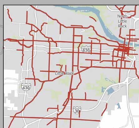Lane miles within Pulaski County make up 40 percent of the total lane miles within the Central Arkansas Region.