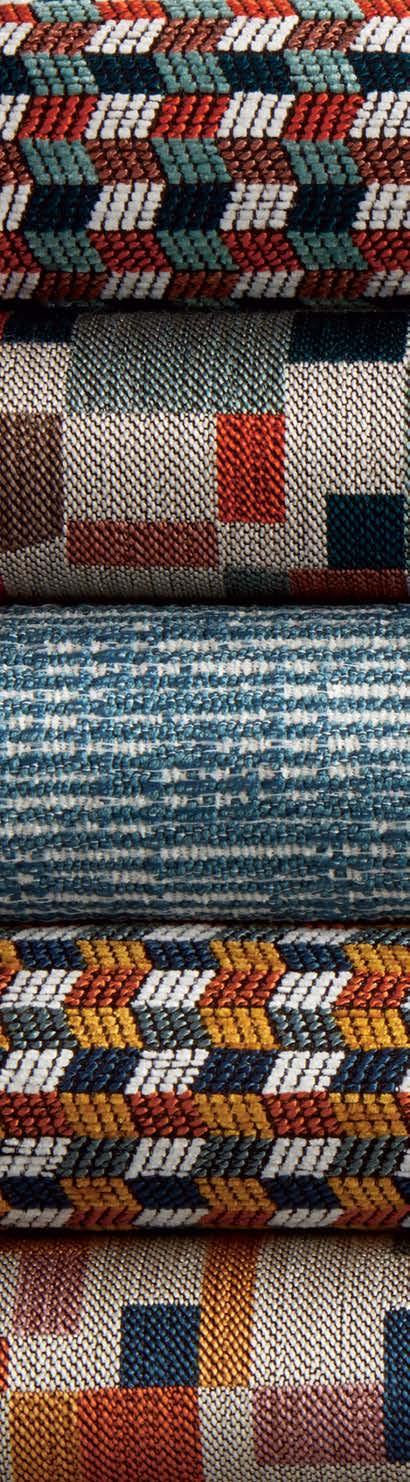The Pattern Mix Collection offers three new signature upholstery fabrics: Block Party, Grid Play, and Rafter. The interplay of color, geometry, and texture creates a vibrant, cheerful palette, and the highperformance characteristics make the line suitable for all market segments.