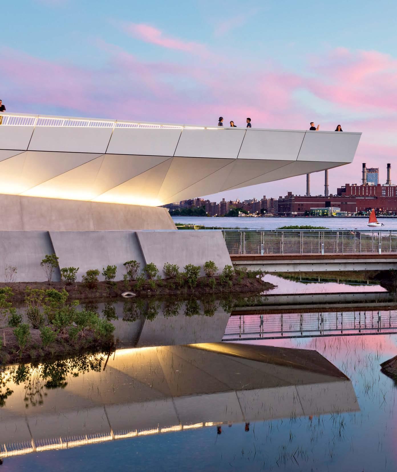 but new concepts in architecture also emerge gradually from a body of work. To mark New York City’s four hundredth anniversary, senior editor Francisco Brown spoke to three local architecture firms that have helped evolve what we think is a significant but underappreciated export from the city—a new type of civicscape (“The Architects Shaping NYC’s Public Space,” p. 80) most easily exemplified by the High Line. Thanks to innovators like Diller Scofidio + Renfro, Marvel, and Weiss/Manfredi, New York is fine-tuning a unique formula that combines public space, infrastructure, cultural arena, and development engine. “We’re questioning the norms of how we treat the city and