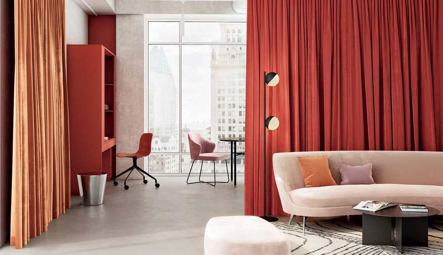 Fabricut Contract’s Trademark Velvet is a highly durable yet incredibly drapable, recycled polyester velvet with an elegant sheen. Available in 53 classic jewel tones, vibrant saturated hues and traditional neutrals, Trademark Velvet is a versatile, luxury velvet that passes both upholstery and drapery fire-retardant specifications, is PFAS-Free, STANDARD 100 by OEKO-TEX® certified, and manufactured in an ISO 14001 facility. fabricutcontract.com