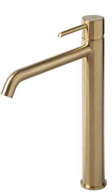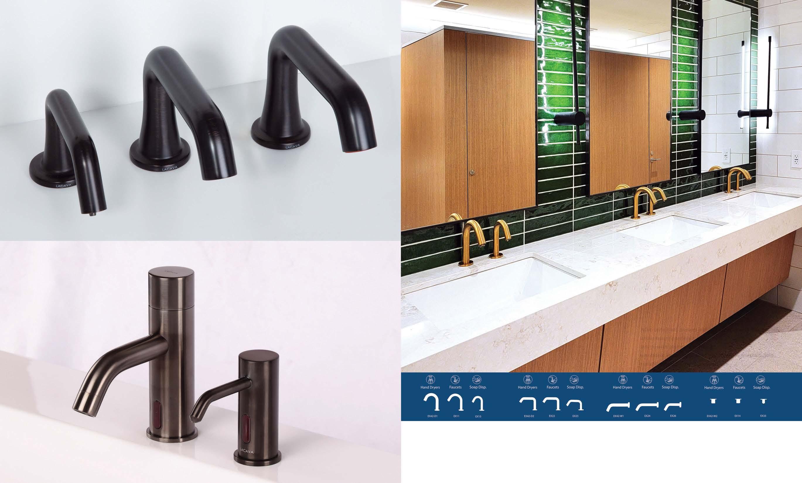 electronic faucet and soap dispenser in brushed gold matching hand-dryer also available