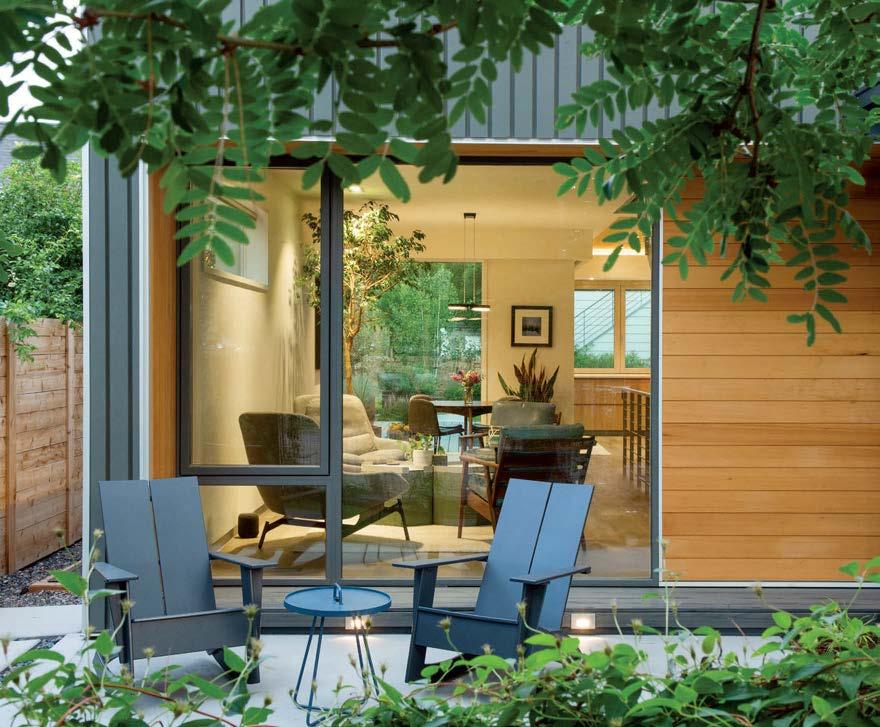 IN 2020 WHEN WASHINGTON, D.C., REZONED its alley lots to allow people to build single-family homes on them, architects Andrew Linn and Jack Becker of BLDUS took over a dumping ground for abandoned cars and put a house on it (“Farm to Shelter: The Architecture of BLDUS,” p. 104). The walls are clad in tulip poplar bark and sassafras wood—both trees native to North America—and in cork, a Mediterranean species that was once so ubiquitous in American architecture that it was used in Fallingwater, the Capitol, and the White House. The eaves that extend from the roof to protect the facade from weathering are made from the wood of the black locust tree, a United States native that this country expatriated to other places in the world.