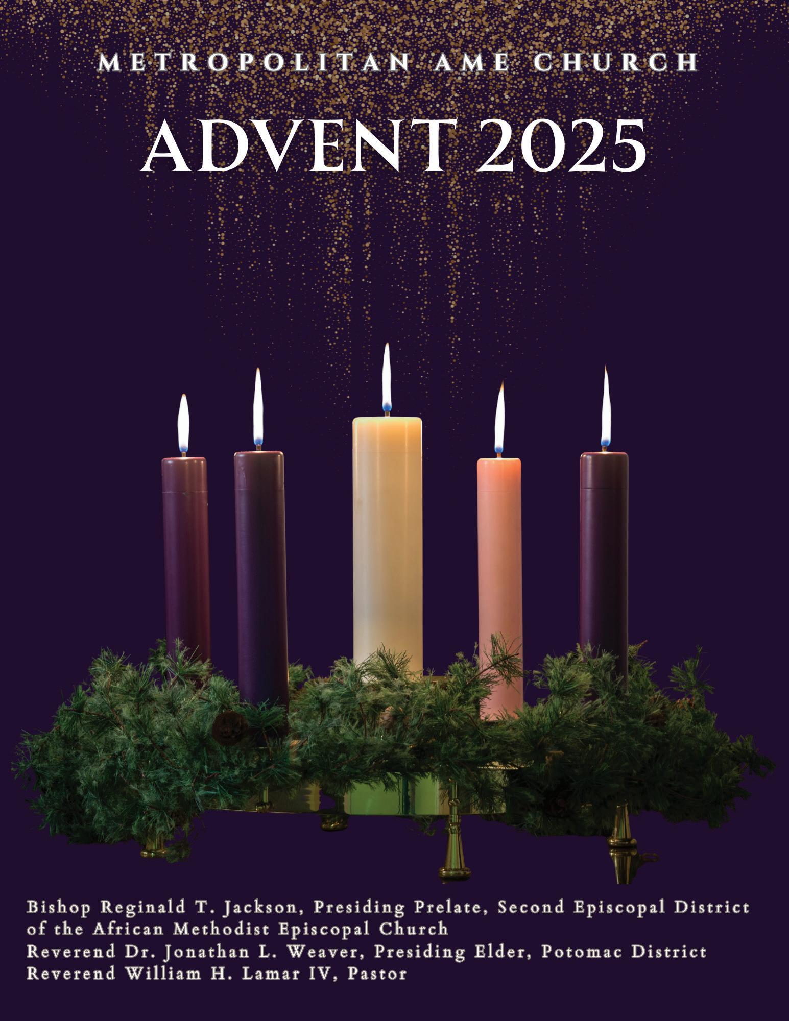 Members and friends of Metropolitan African Methodist Episcopal Church use this booklet to share their reflections of this time and season. Yes, Advent is that season of anticipation and waiting. Yet, as we give thanks for the birth of Christ, we must also answer the call to participate in bringing light to the darkness of this world.