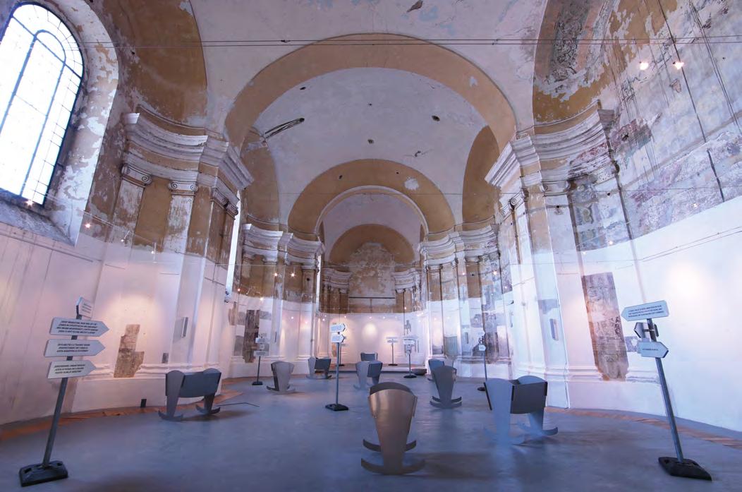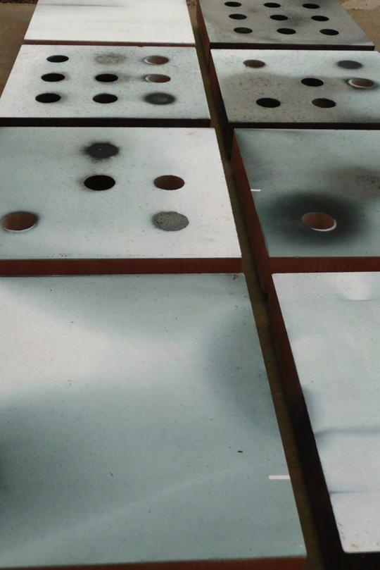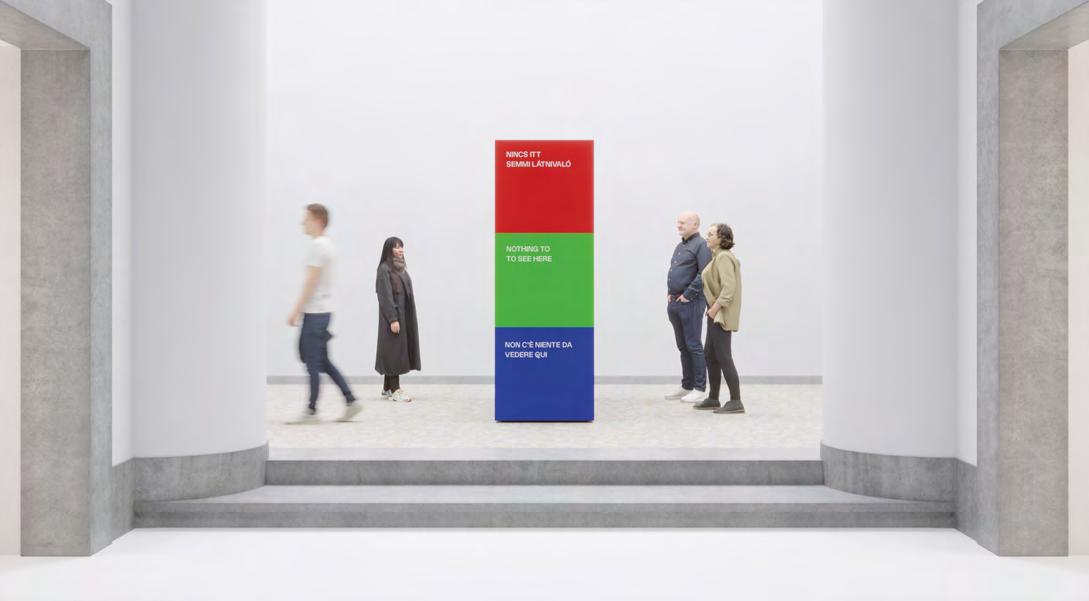 Installációhanggal.Kilencbölcső,nyolcjelzőtábla,acél, gipsz.Társszerző:MajorosÁronZsolt