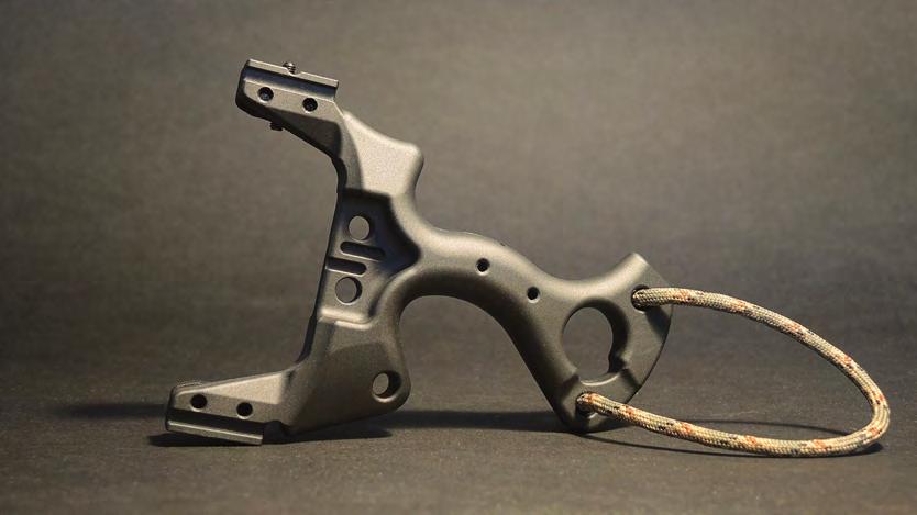 AxiomX.céllövőcsúzli.2022 Sárgarézéskarbonlaminátumdigitalizálva. ASimpleShotmegrendelésérekészültNathanMasters kézzelkészítettcsúzlijaalapján(…)revereseengineering segítségévelkaptammegazalapformát,eztCAD-alkalmazásbabeemelvejöttlétreazállíthatóeszköz.