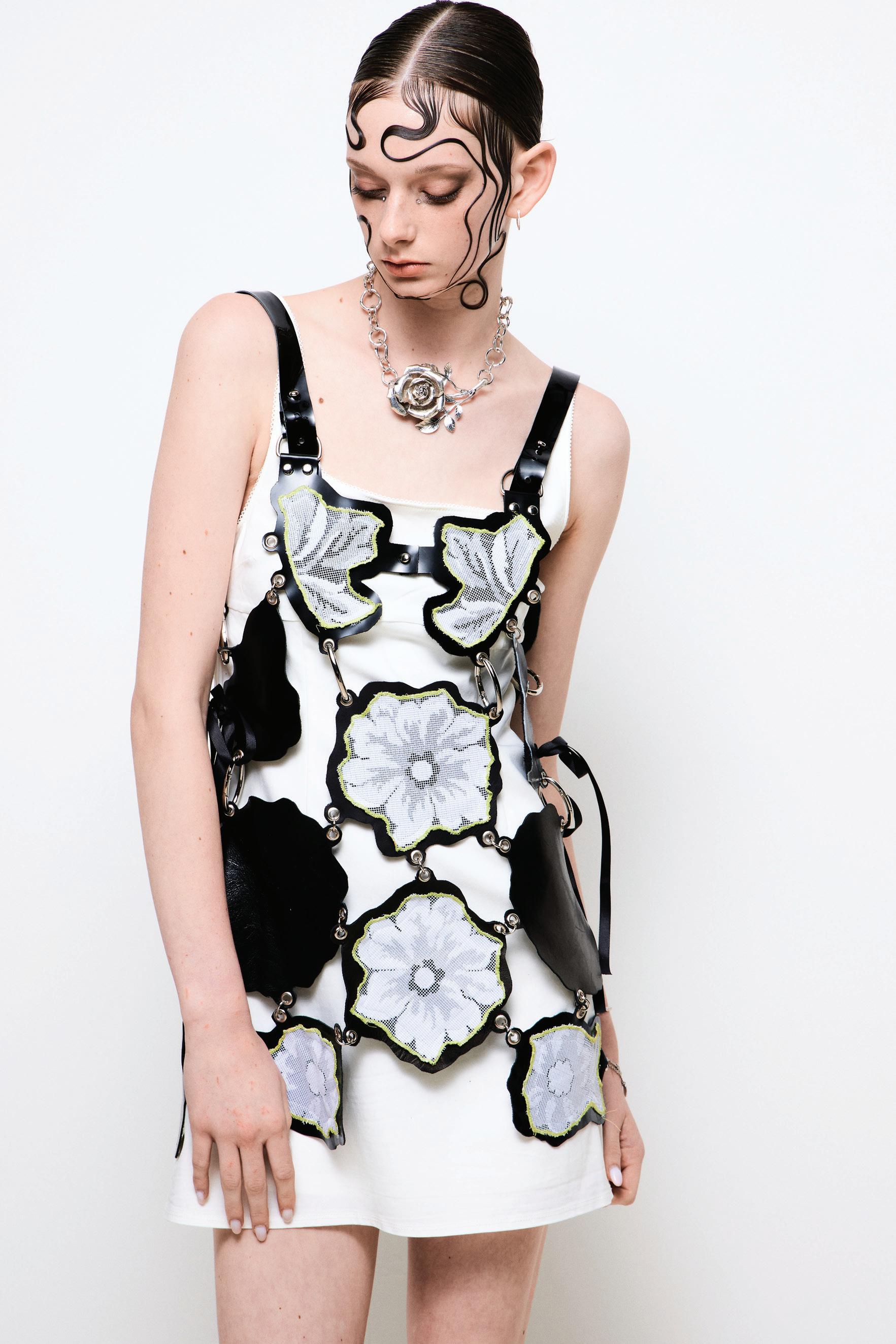 Éva Karolyna tervezői munkájának. Bár az általa megalkotott ruhák a Chopova Lowena divatház stílusjegyeiből inspirálódtak, ezt ötvözte a nagyszülők textíliáinak használatával. A régi lakástextilek ruhába való beépítése az ismert brit márkát így személyes történeti szállal bővítette.